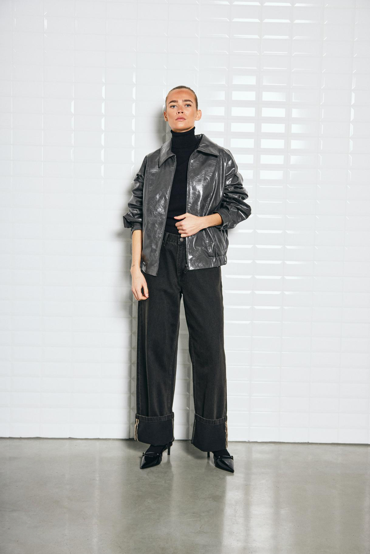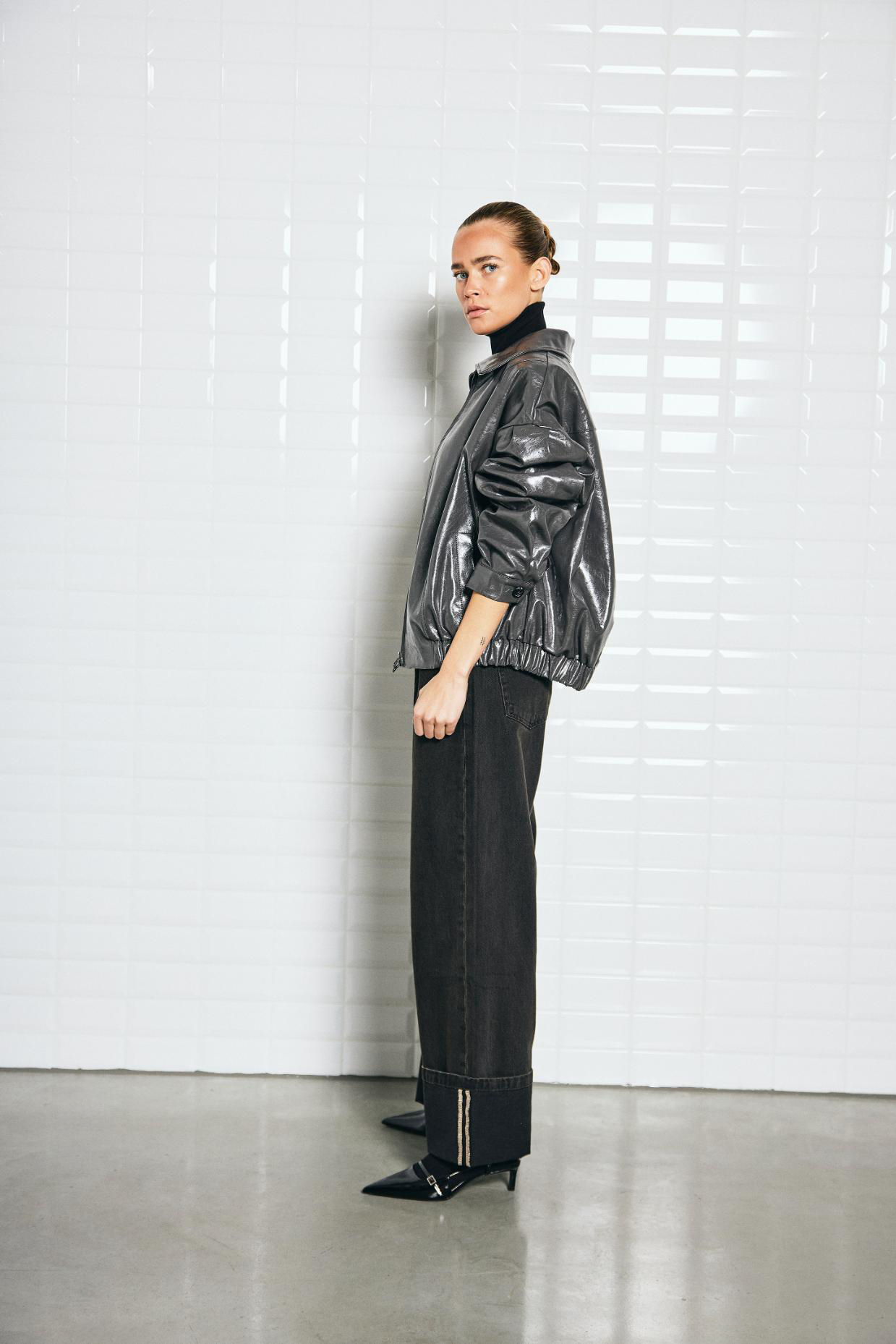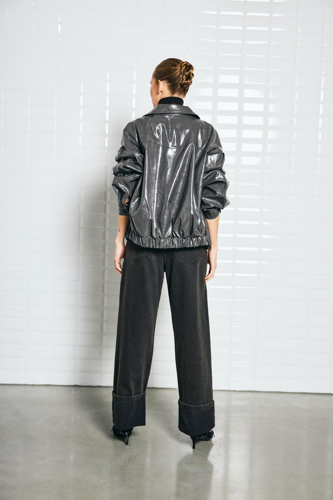 Vegan leather with shiny finish