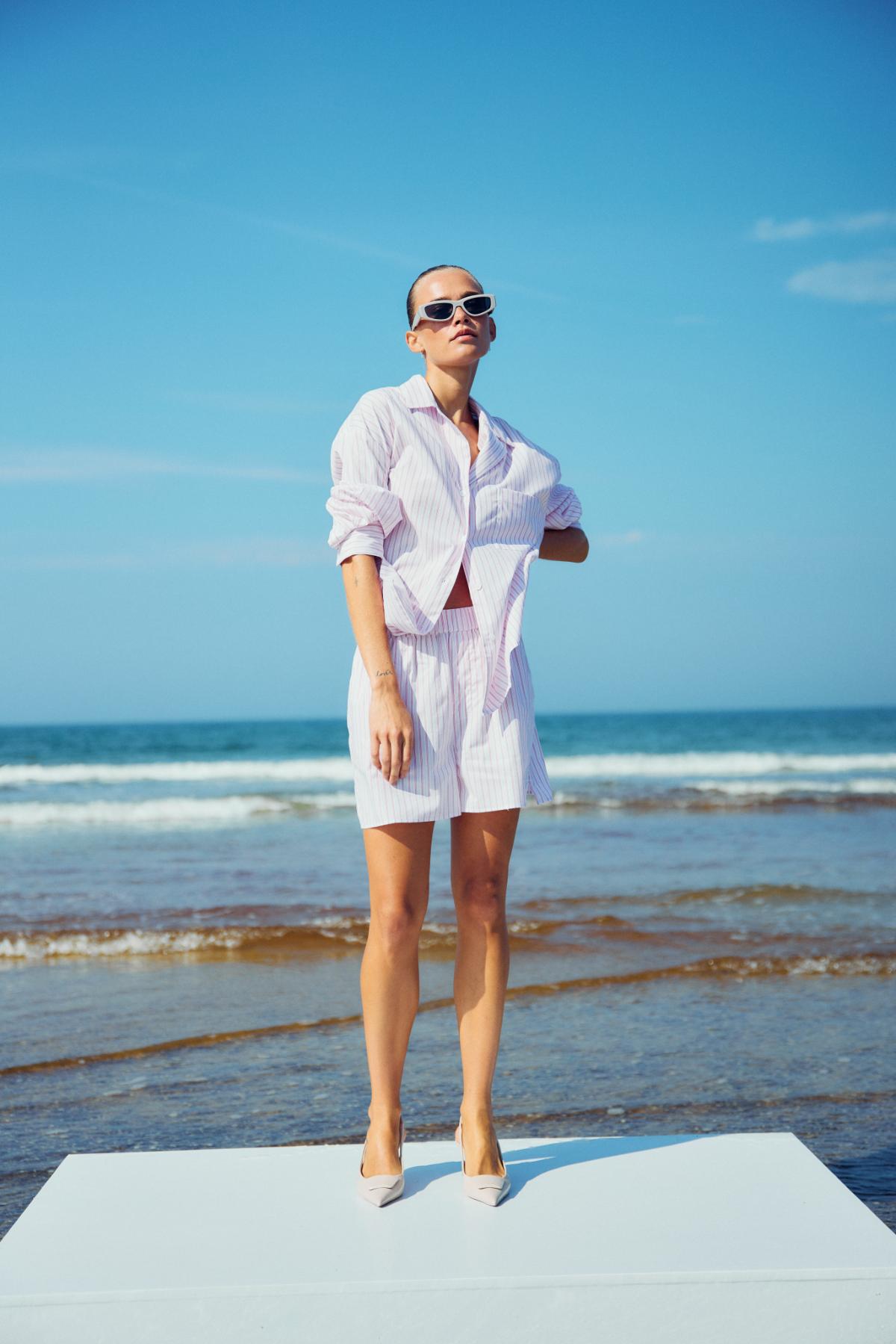 Shorts in light striped cotton fabric