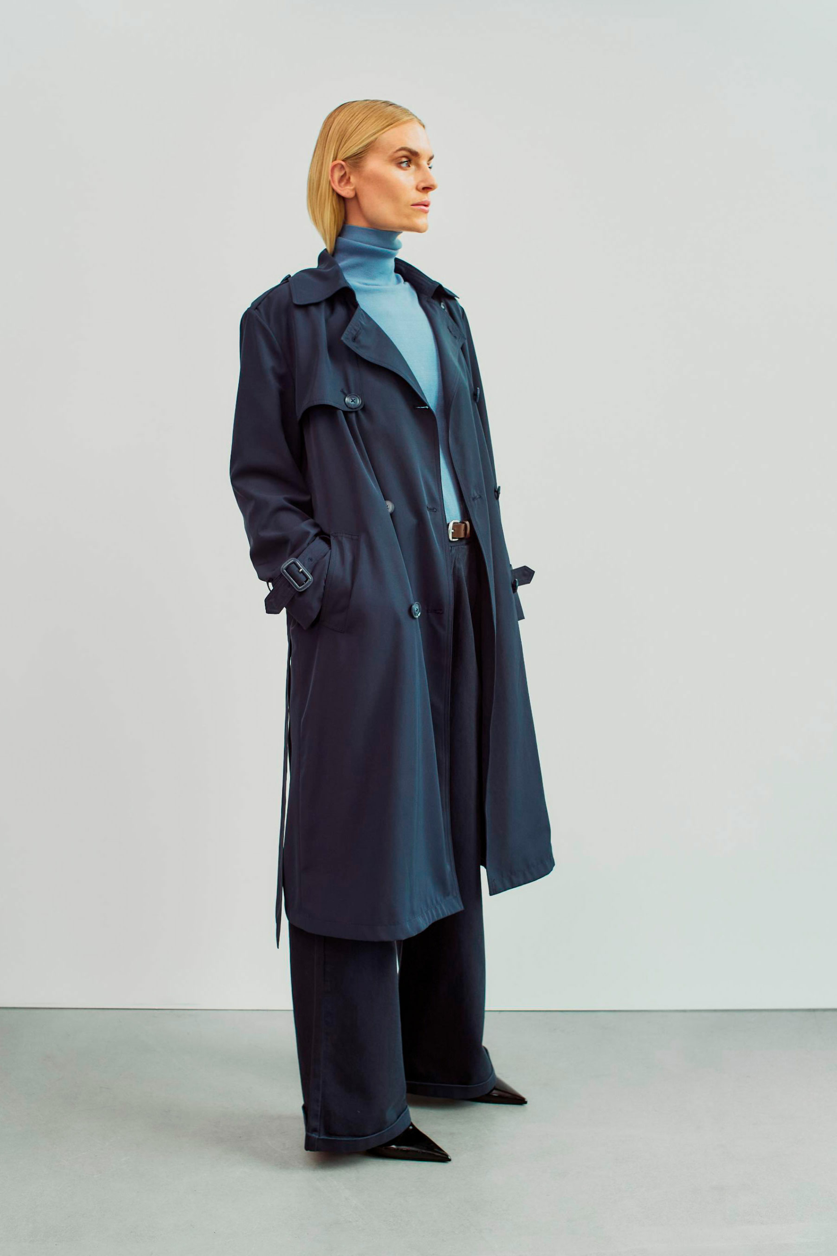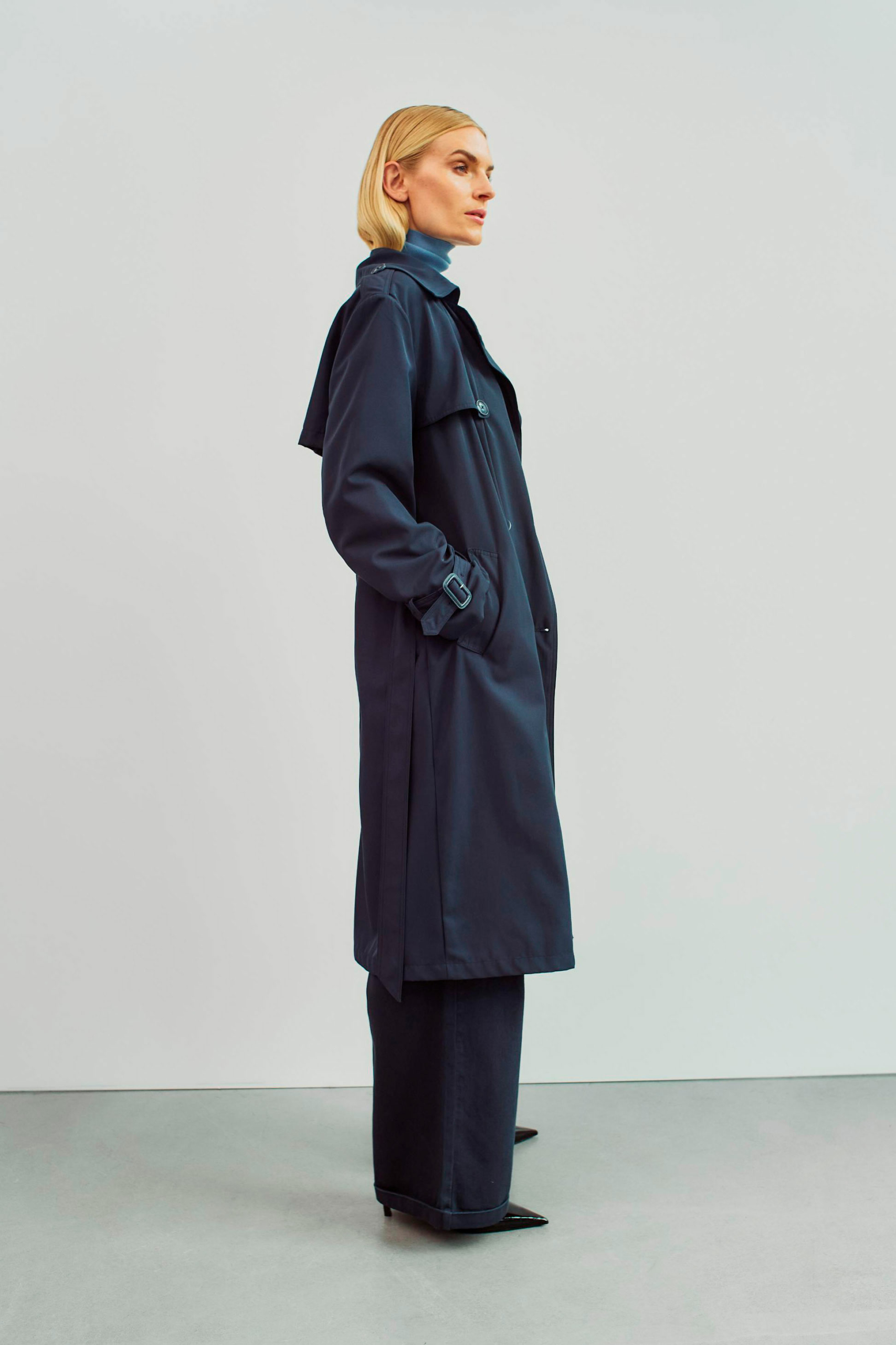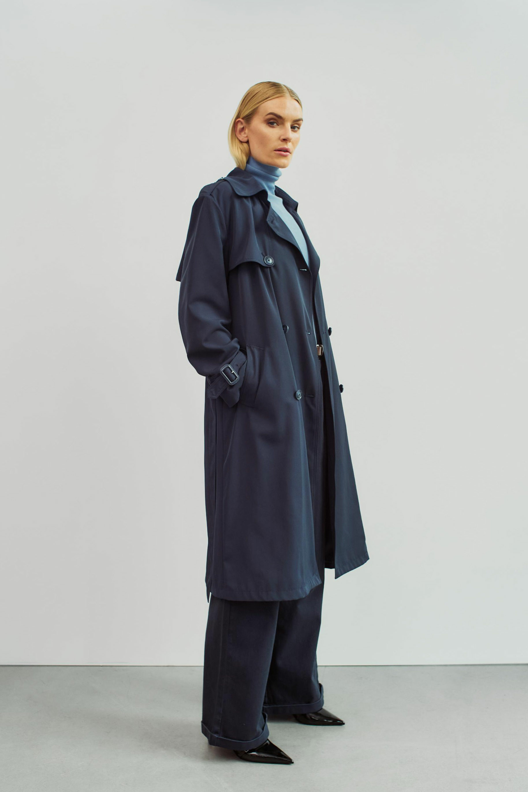 Frakken er designet i boxy pasform, der er lettere oversize i silhuetten. Ønsker du en mindre vidde i frakken, anbefaler vi, at du vælger en størrelse mindre, end du normalt bruger.