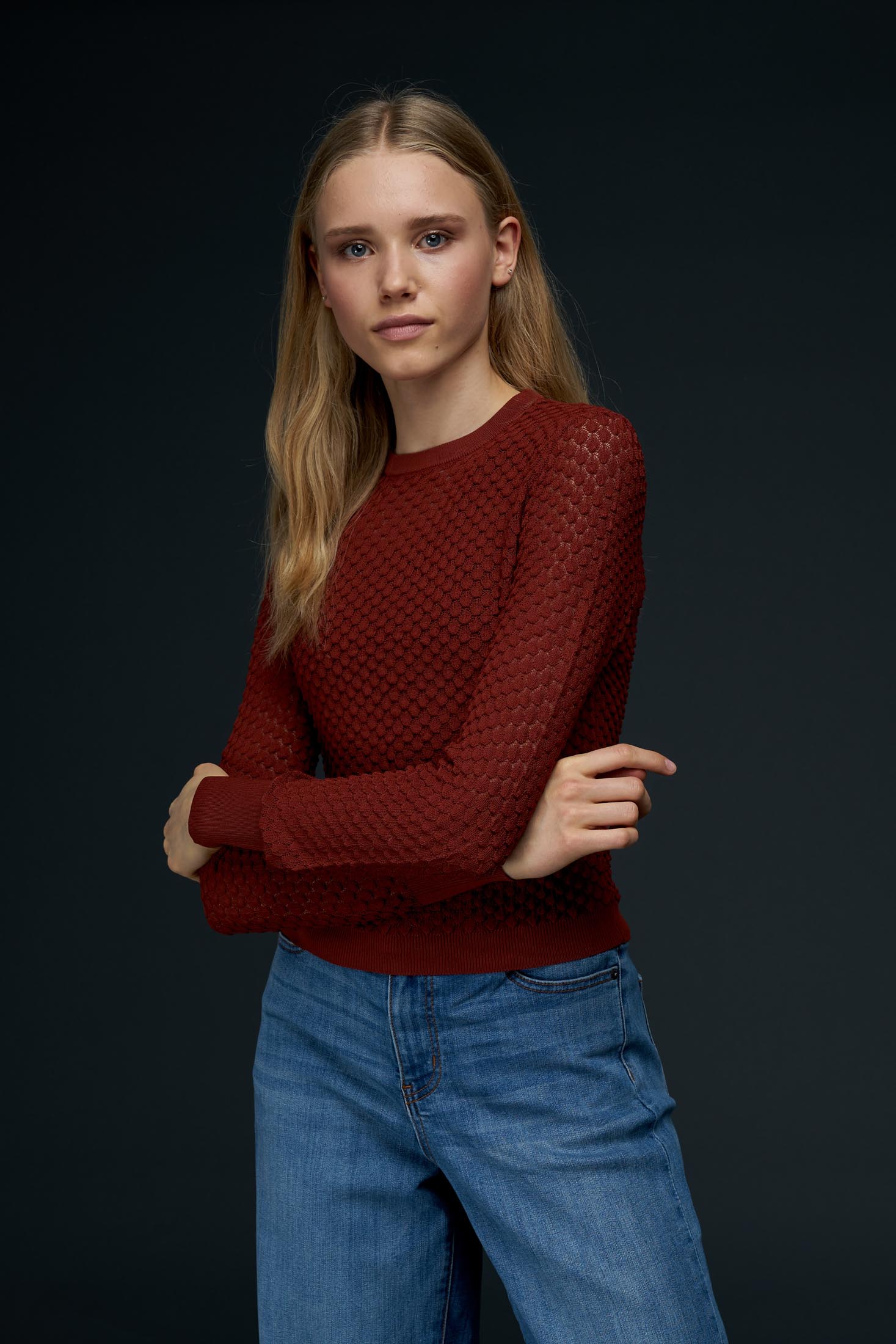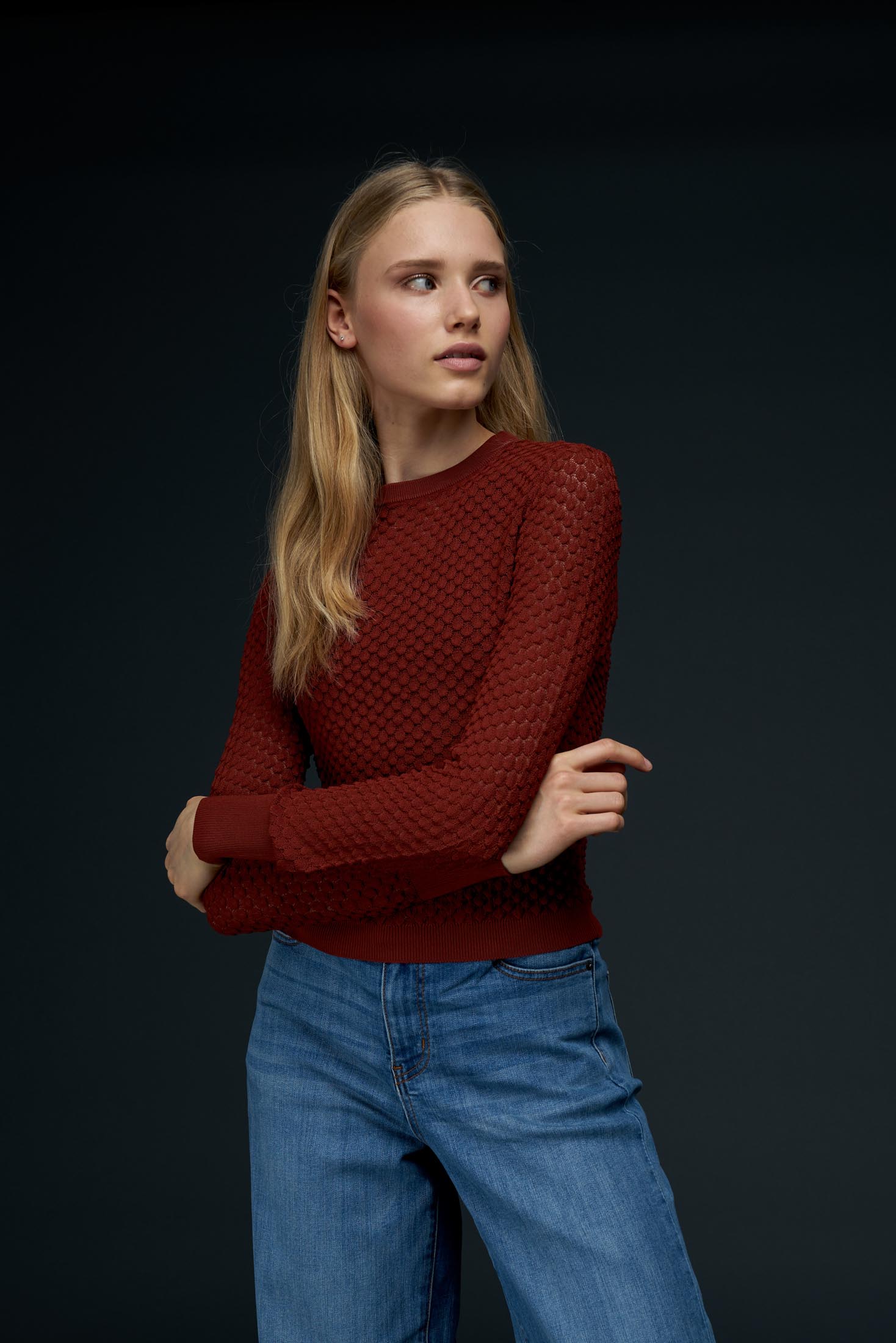 Ein echter Liebling in Ihre Garderobe ist dieser Strick, leicht und weich. Mit langen Ärmeln und runden Ausschnitt und im schönsten 3D-Muster gestaltet.
