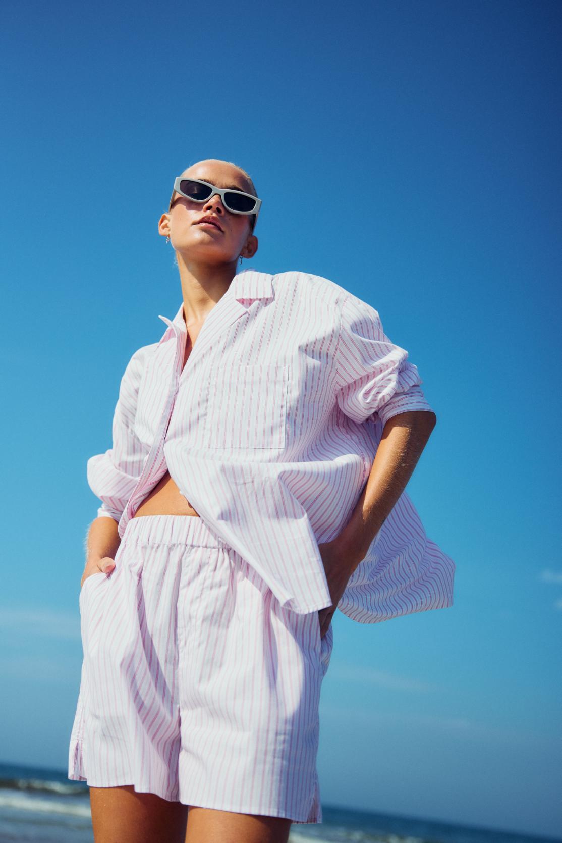 Shirt in light striped cotton fabric