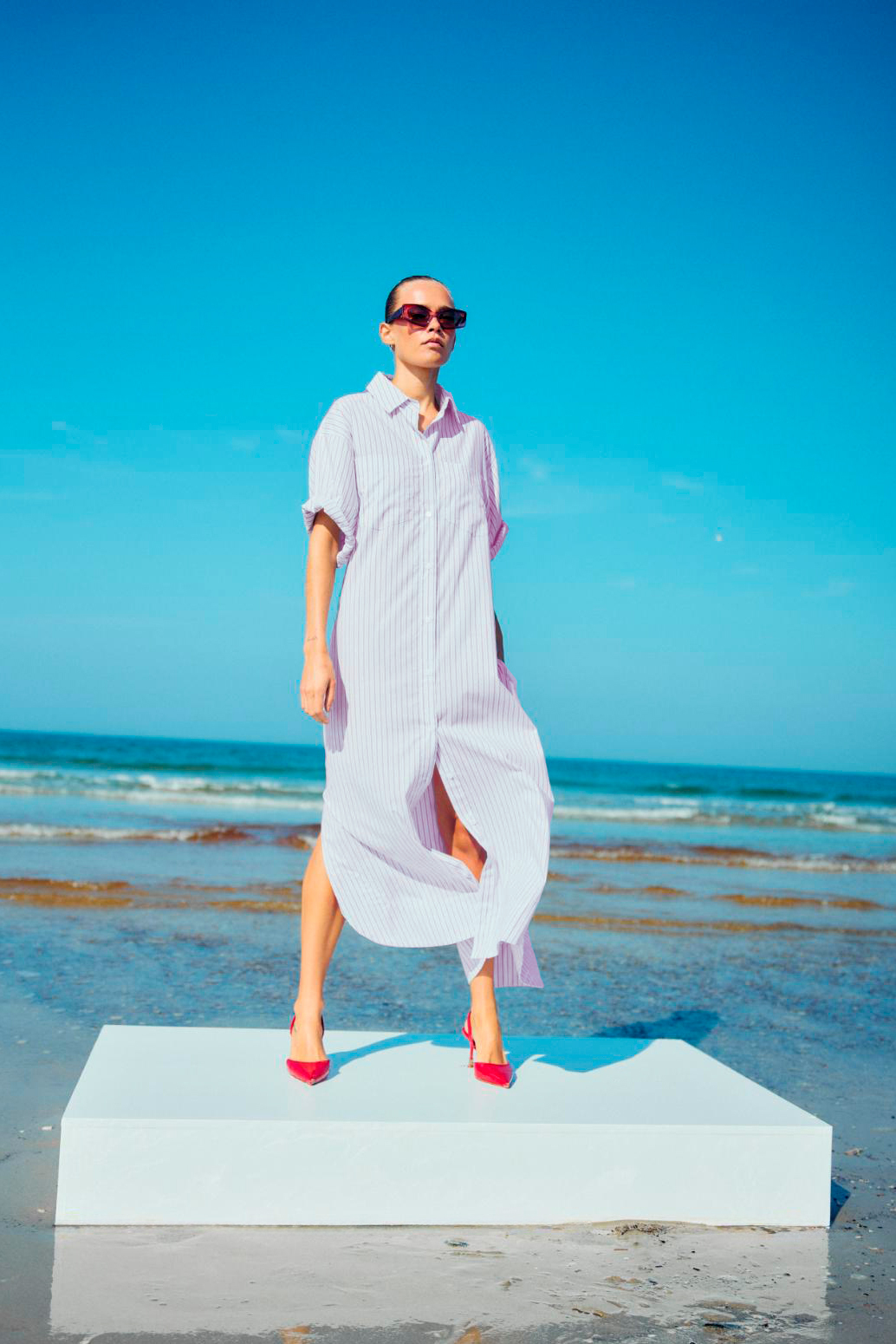Dress in light striped cotton fabric