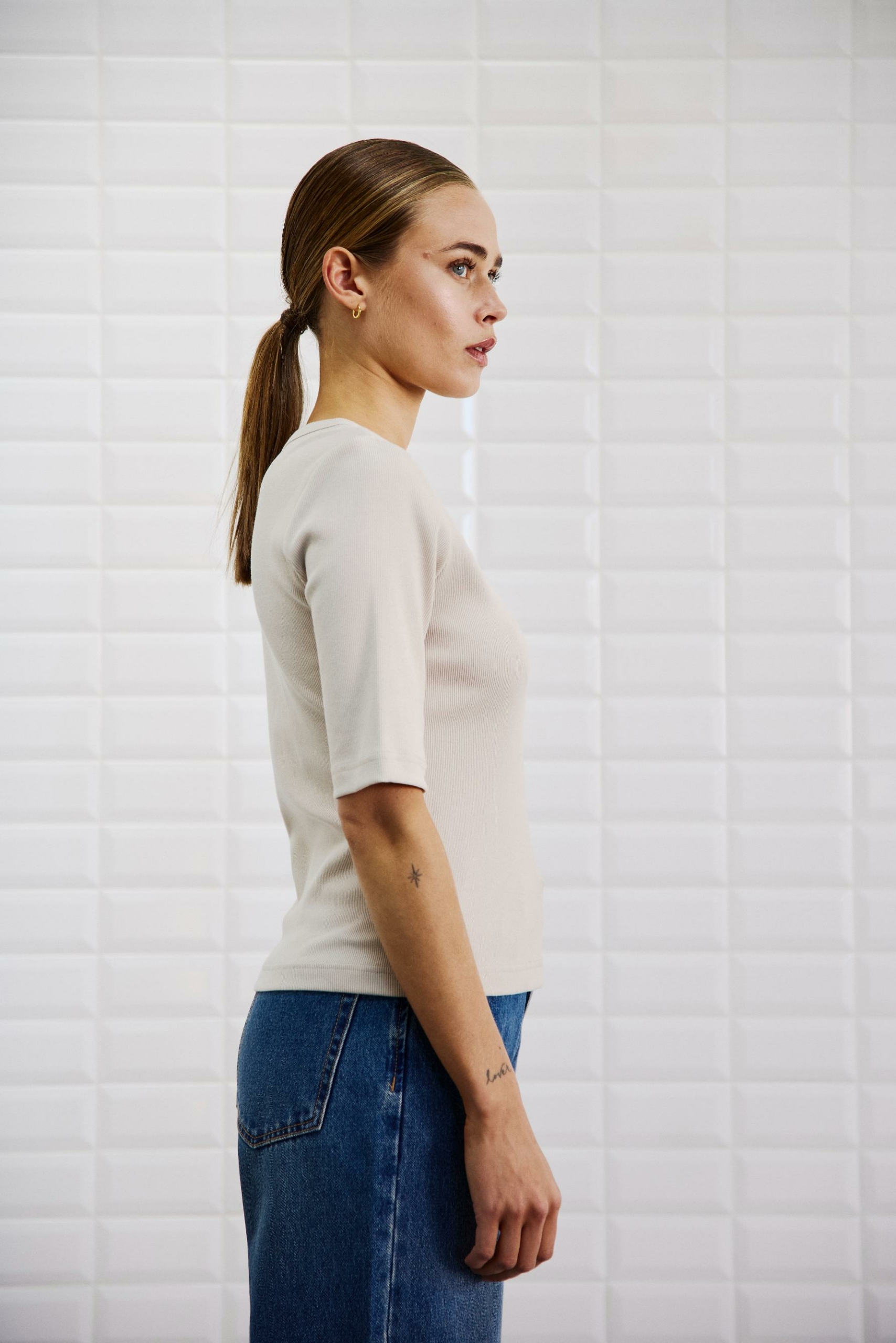 T-shirt i mjuk ribbstickad kvalitet
